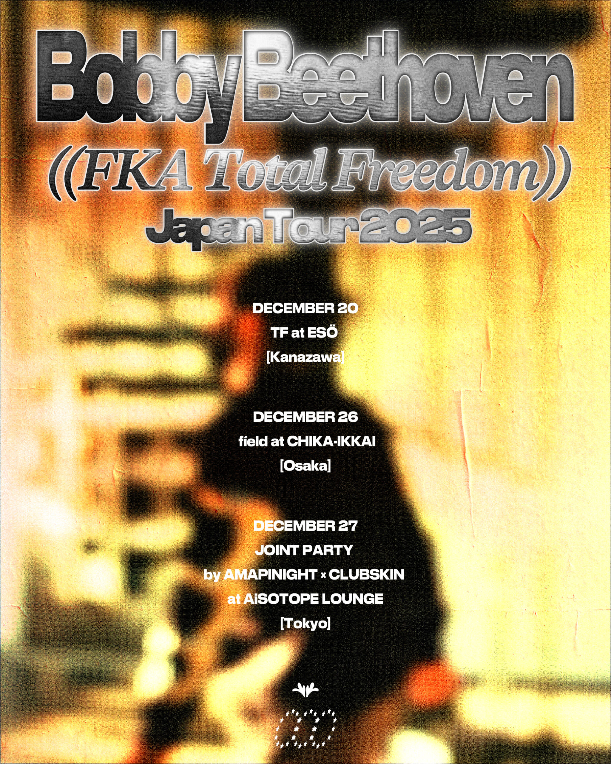 Bobby Beethoven、かつてTotal Freedomとして知られたアーティスト。音楽・アート・ファッションなど複数の領域を横断して活動しながら、20年にわたるキャリアを持ち、世界的に高く評価されている。伝統的なクラブミュージックの境界を常に押し広げる「音のリスクテイカー」として、その名声を築いてきたが、このインタビューが指し示すように強固なスタンスと意志、独自の選曲的嗜好が意図せぬかたちで、しかし正当に評価をされたアーティストのひとりでもある。