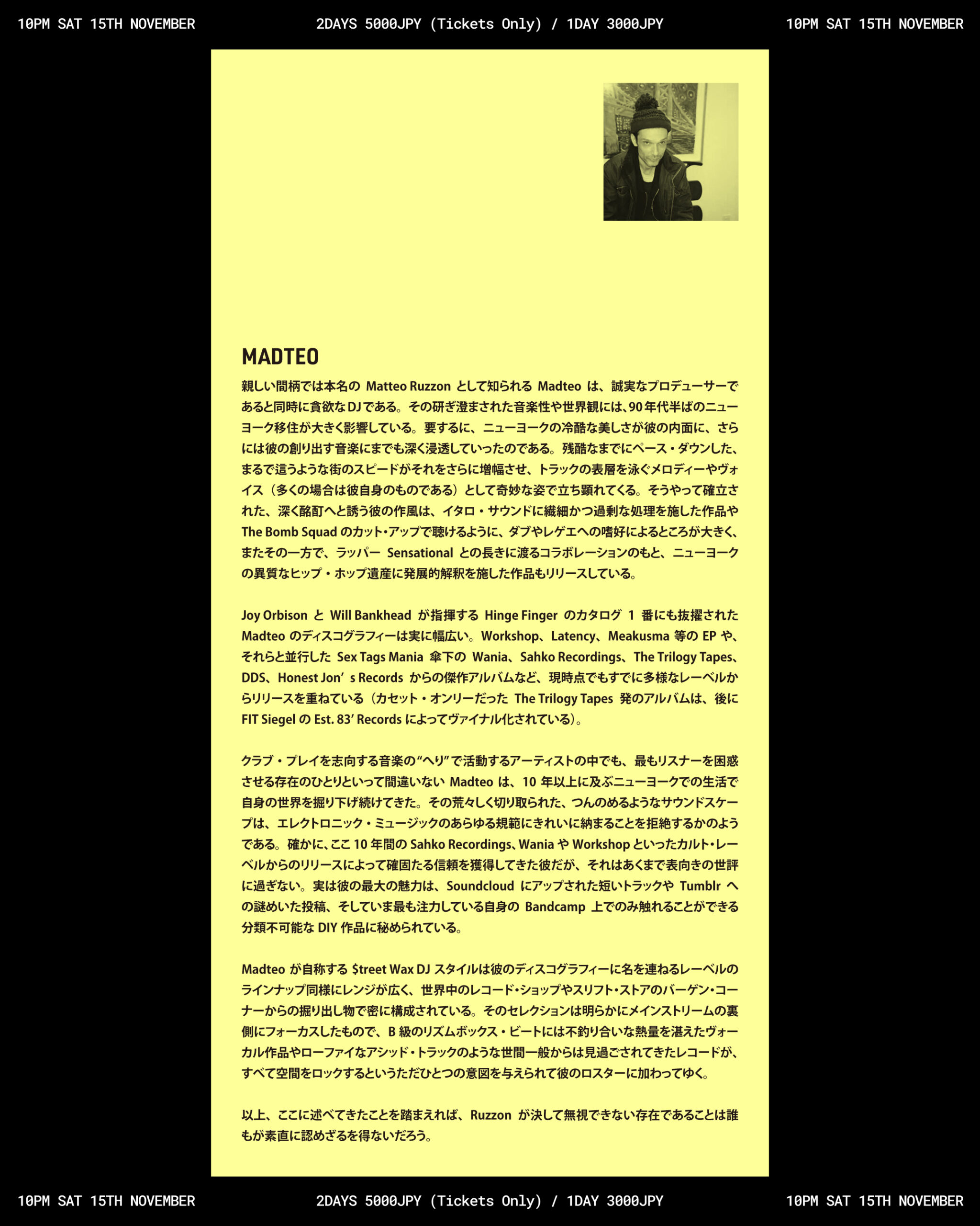 2DAYS (11.8 & 15) 5000JPY *Tickets Only